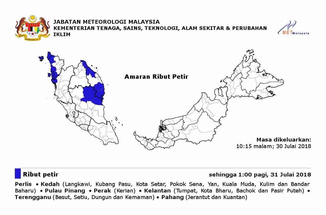 Amaran Ribut Petir Di Kawasan Perlis Kedah Pulau Pinang Dan Perak R Malaysia